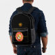 Rucksack schwarz mit rot, weiß, schwarz und gold konzentrischen Kreisen Design mit "KANSAS CITY, MISSOURI CENTER OF THE UNIVERSE GO GHIEFS!!!!" "HEY BABY!!! SUNNY & RAYRAY BEAM THE SUNSHINE BROTHERS" mit einem Bild von Sunny und RAYRAY BEAM und einem Y-NOT-ME Logo im Hintergrund. Dieses Design ist ein Ausruf nach Kansas City, Missouri Zuhause der Superbowl Champions.
