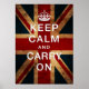 Motivieren und ermutigen Sie mit dieser coolen Version des Posters "Keep Calm and Carry On" aus Großbritannien des Zweiten Weltkriegs! Die Standardlinie und -krone mit einem leicht einstürzenden Schatten sorgt für zusätzliche Tiefe auf einer leicht bedrängten Union Jack Fahne für diesen Vintagen Look.