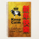 Popular "Keep calm" with a royal Goat + large vertical red greetings in Chinese onto a golden background (printed image n°2 of textured paper). Design on spiral planner. Perfect for Chinese New Year of the Goat, Ram or Sheep Year with an occidental accent.
