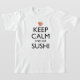 Keep Calm And Eat Sushi. This funny sushi lover accessory is a great sushi lover gift for a man, woman, girls, boys, teens & kids who love to eat sushi & sashimi at Japanese restaurants, and love wasabi, ginger and soy sauce. If you love Japanese food, and eating tuna maki rolls and nigiri sushi with vinegared rice, this sushi lover accessory is for you!