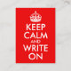Rot weiß anpassbares "Behalt Calm and Write On" Parody-Design für Autoren, basierend auf dem klassischen Poster. Sie können die Kontaktinformationen auf der Rückseite löschen oder die Größe und den Stil des Schriftartes ändern.
