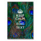 Keep Calm And Your Text on Peacock Feathers Tischnummer