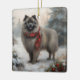 Keeshond Dog in Schneehocht Keramikornament