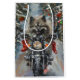 Keeshond Dog Riding Motorrad Weihnachten Mittlere Geschenktüte