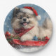 Keeshond Hund in Sledge Lass es Schnee Weihnachten Pappteller