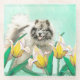 Keeshond in Tulips Malerei Niedliche Original Hund Glasuntersetzer