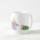 Keeshonden Weihnachtskaffee Tasse. Niedliche Keesie Welpen spielen. Keesie Welpe schauen auf ein orangefarbenes Tabby-Kätzchen auf ein Weihnachtspaket. Welpen kauen auf einer Hütte und ein anderer schaut in einen Strumpf. Diese bezaubernde Tasse macht einen schönen Urlaub. Besuchen Sie Jenn's Doodle World für noch mehr Kunst und Cartoon von Keeshond-Liebhabern. ©Jenn Inashvili
