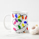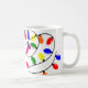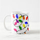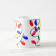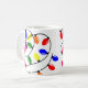 Diese Tasse hat ein Weihnachtsdesign aus gezinkten Lichtern in Rot, Blau, Gelb, Grün, Rosa und lila.