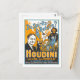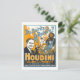 Diese Postkarte ist eine Reproduktion einer Vintagen Lithographiewerbung für den berühmten Zauberkünstler Houdini. Das Plakat Staaten: "Gibt es wieder Geister? Houdini sagt nein - und beweist es" und verspricht "Magie, Illusionen, Flucht = offenbarte Betrugsmedien".