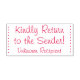 Dieses modische Design aus Gummi-Briefmarke beinhaltet die Botschaften "Kaufen Sie bitte zum Sender zurück!" und "Unbekannter Empfänger". Es kann möglicherweise verwendet werden, um anzugeben, dass die empfangene Briefpost an die falsche Adresse geliefert wurde oder der Empfänger unbekannt ist und an den Absender zurückgeschickt werden sollte.