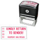 Dieses Design aus Gummi-Briefmarke enthält die Botschaften "Freundliche Rückkehr zum Sender!" und "Der Empfänger hat sich bewegt", zusammen mit einer dekorativen Doppelpfeil-Form. Es könnte verwendet werden, um anzugeben, dass die empfangene Briefpost falsch adressiert worden sein könnte und an den Absender zurückgeschickt werden sollte.