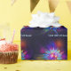 Ein sehr helles und farbenfrohes, Blume-ähnliches Fraktal auf einem sternenförmigen Hintergrund. Fügen Sie Ihren eigenen Text hinzu.
