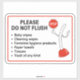 Unser "Don Not Flush Sign" ist die einfache und effektive Methode, um unnötige Schäden an den Badezimmerröhren zu vermeiden. Dies ist ein häufiger Hinweis, der in vielen Toiletten zu finden ist. Es gibt viele Gründe dafür, dass sie veröffentlicht wird, aber am häufigsten ist es, die Menschen darauf hinzuweisen, dass Wischmittel (wie weibliche oder Babywischmittel) oder andere Gegenstände wie Windeln und weibliche Hygieneprodukte nicht getuscht werden sollten.