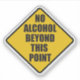 Kein Alkohol jenseits dieses Punktes Aufkleber für Geschäftstür oder Tor. Leicht lesbarer schwarzer Schriftart auf gelbem Hintergrund in einer Rautenwarnform.