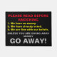 Ein schwarzer Hintergrund mit dem folgenden Text: Bitte gelesen bevor dem Klopfen, 1. Wir haben kein Geld 2. Wir haben bereits gewählt. 3. Wir sind fein mit unserem Glauben. Es sei denn Sie weg Geld geben, GEHEN Sie!" weg