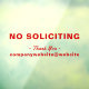No Soliciting mit Vielen Dank und Unternehmen Website Adresse Geschäftszeichen Klammern. Roter Text.