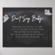 Ein kleines Buch ist auf dem Schild "Don't say baby" Baby-Duschgame zurückzuführen.
