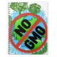 Ein globales Anliegen für die ökologisch Nachhaltige, Bio und konservative Biologie, die mit der Botschaft NO GVO und einem Globus mit Nordamerika und der Spitze Südamerikas, mit Bäumen, Vögeln, Pinguinen, Meereswellen, Wirbel und einem großen roten NO-Zeichen, beschäftigt ist