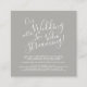 Einfache moderne Hochzeitslive Video Dampf Gehäuse Karte mit Ihrem eigenen Foto auf der Rückseite. Einfaches, zeitgenössisches Skripttext-Graue und Weiß-Design. Personalisieren Sie mit Ihren eigenen Hochzeitsnachrichten, Bräuten, Namen und Details für Gäste, die nicht persönlich teilnehmen können, um aus der Ferne sehen und teilnehmen zu können. Passende Mono-Skript-Hochzeitsartikel und andere Farboptionen sind im Shop erhältlich. © Original Design by www.mylittleedenweddings.com