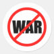 Dieses Kunstwerk zeigt das Wort Krieg, das in einem Kreis ausgekreuzt wurde.