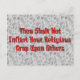Es ist müde, dass religiöser Mist von den bibelstickigen Kool-Hilfetrinkern auf dich gesprengt wird? Unterstützen Sie sie mit diesen Worten: "Du sollst anderen nicht deinen religiösen Mist aufzwingen."