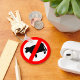 Ein Schild für kein Rindfleisch mit einem Auto und einer roten Linie durch es. Dieses Design sieht auf diesem Schlüsselanhänger wirklich effektiv aus