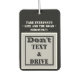 Nehmen Sie das Leben und die Straße ernst, Don't Text and Drive ist vorne geschrieben. Geometrisches Quadrat mit silber, schwarz und weiß vor schwarzem Hintergrund. Nicht ablenken, dass der Treiber auf der Rückseite geschrieben ist. Original Design © TamiraZDesign.