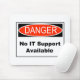 Behalte diese Gefahrenwarnung oder fahre auf eigene Gefahr. "Kein IT-Support verfügbar" ist die Meldung dieses offiziellen Hinweises. Sie werden auf jeden Fall gewollt, die Botschaft mit denjenigen zu teilen, die die Informationstechnologie oder den Computer- und Netzwerktechniksupport nicht ernst nehmen.