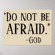 Dies ist ein cooles hellbeige Farbposter mit einem mächtigen Zitat aus dem Glauben, das in großen schwarzen Buchstaben gedruckt wurde und lautet: 'SEID KEINE AFRAID. -GOTT."