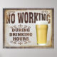 Ein Vintages Aussehen-Poster mit einem Schaumglas Bier und sagt "Keine Arbeit während der Essenszeiten". Ein unterhaltsames, lustiges Poster.