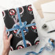 Ein Yin-Yang-Symbol wird kreativ mit der Phrase "Keine Eile ohne Pause" angepasst, begleitet von einer Pause-Taste und einem Wecker, die beide mit Rot überquert werden, um zu vermitteln, dass sie nicht erlaubt sind. Das Design weist einen kühnen Kontrast von Schwarz, Rot und Weiß auf.