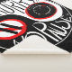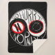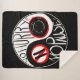 Ein Yin-Yang-Symbol wird kreativ mit der Phrase "Keine Eile ohne Pause" angepasst, begleitet von einer Pause-Taste und einem Wecker, die beide mit Rot überquert werden, um zu vermitteln, dass sie nicht erlaubt sind. Das Design weist einen kühnen Kontrast von Schwarz, Rot und Weiß auf.