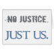 "Keine Gerechtigkeit" in einem grauem grauen Schriftart. "Just us" in einem saubereren, puderblauen Schriftart.