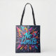 Diese kühne Tasche ist im Graffiti-Stil "No Limits"-Design auf der einen Seite, gepaart mit lebhaften, bunten Streifen auf der anderen Seite. Ideal für diejenigen, die urbane, inspirierte Mode und ausdrucksvolles, dynamisches Accessoire Liebe finden.