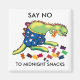 Dinosaurier fing Fressen Lollen in seiner Pyjama-Erinnerung auf den Kühlschrank zu setzen