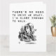 "Es gibt keinen Grund, mich verrückt zu machen. Ich bin nah genug zu laufen." Eine klare, einfache — und sehr lustige — Aussage, in Schwarz und Weiß präsentiert mit einem schlichten, und einem kleinen zarten, blockartigen Schriftart, der so aussieht, als wäre er mit einem dieser Label entstanden, die Gadgets herstellen. Der Mad Hatter hält sich in der Illustration, obwohl das Zitat nicht wirklich in "Alice" steht, und Autos waren ohnehin nicht da, um ihn irgendwo zu fahren. Und hier ist alles auf einer Grußkarte, die Sie an Freunde oder Verwandte schicken können, damit sie wissen, dass sie gewollt haben, Sie zu Arm behalten.