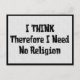 Einfaches und für T - Shirt, Aufkleber und Tasten geeignetes Sprichwort: "Ich denke, deshalb brauche ich keine Religion."