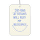 Erhöhen Sie Ihre Autofahrten mit diesem inspirierenden Auto-Erfrischer mit der motivierend Botschaft: "Keine schlechte Einstellung wird meine Segnungen ruinieren." Behalt dein Auto gut riechend und erinnere dich auch, positiv & dankbar bleibe, egal was das Leben dir zuwirft. Ein perfektes Accessoire, um während Ihres täglichen Pendeltages gute Vibes zu verbreiten.