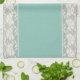 Ein wunderschöner aquamariner blauer Hintergrund mit Spitzen an den Rändern und den Worten: "Keine Sorge, BEE glücklich"