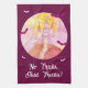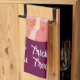 Keine Tricks nur Leckereien Spooky Castle Halloween Küchentuch. Wunderschönes Schloss auf dem Hügel. Das Design ist lila und orange.