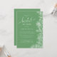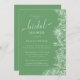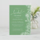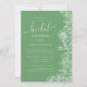 Diese Einladung enthält weiße Linien gezeichnet Blume und benutzerdefinierte Kalligraphie. Die weiche kelly grüne Farbe ist die perfekte Kulisse für diese Einladung.