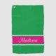 Kelly Green Pink Strip Skriptname Golfhandtuch
