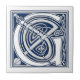 Diese Fliese kennzeichnet einen schönen, dekorativen prägeartigen keltischen Buchstaben G, der mit grauen Dracheköpfen auf einem samtartigen dunkelblauen Hintergrund belichtet wird.