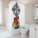 Eine Fee, die sich gegen ein keltisches Kreuz lehnt