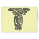 Von den Lindisfarne Evangelien - zwei doglike Geschöpfe, die in einer traditionellen keltischen Knüpfarbeit entwirrt werden, entwerfen, maserten in den Schatten des gesprenkelten Grüns und des Graus.