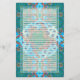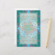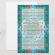 Eine keltische Knüpfarbeitseeschildkröte schwimmt gegen ein kreisförmiges blaues Knüpfarbeitmeer. Mit einem geometrischen Knüpfarbeitmuster als Hintergrund. Gezeichnetes Briefpapier.