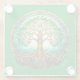 Untersetzer in einem stilisierten keltischen Baum des Lebens, aufwändig detailliert mit sich verwobenen Zweigen und Wurzeln, die einen Kreis bilden, umgeben von verzierter keltischer Knüpfarbeit. Die lebhaften grünen Blätter und der goldbraune Kofferraum symbolisieren Harmonie und Verbundenheit