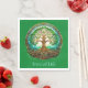 Papierservietten in einem stilisierten keltischen Baum des Lebens, aufwändig detailliert mit sich verwobenen Zweigen und Wurzeln, die einen Kreis bilden, umgeben von verzierter keltischer Knüpfarbeit. Die lebhaften grünen Blätter und der goldbraune Kofferraum symbolisieren Harmonie und Verbundenheit
