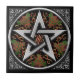 Künstlerischer keltischer Pentagramentwurf in silbernem Poliermetall. Feuer-atmendrachen im Rot und im Grün. Verwickelter Eckc$rollework. Elegantes Geschenk für Wiccans, Heiden, Nachfolger der Erdreligionen.
