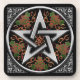 Künstlerischer keltischer Pentagramentwurf in silbernem Poliermetall. Feuer-atmendrachen im Rot und im Grün. Verwickelter Eckc$rollework. Elegantes Geschenk für Wiccans, Heiden, Nachfolger der Erdreligionen.